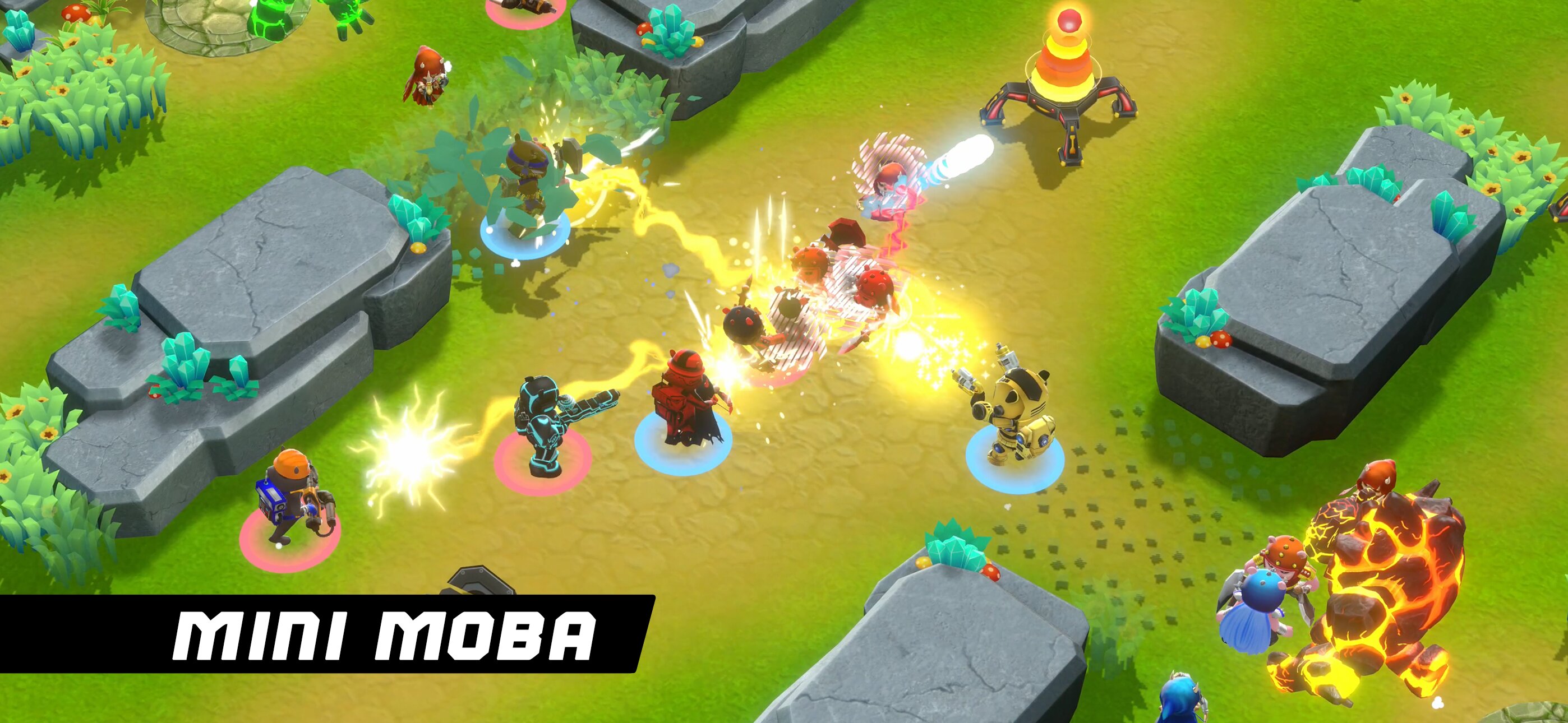 - Несколько оригинальных режимов игры: Mini MOBA, Battle Royale, Brick Battle и Team Deathmatch.