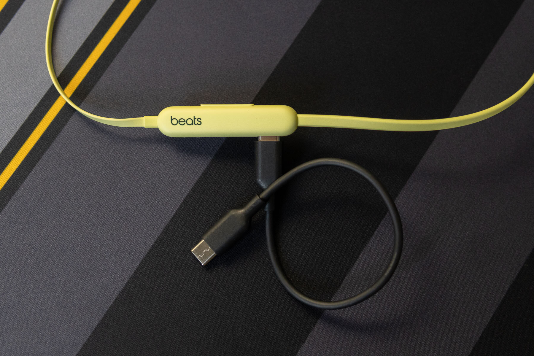 Компания не раскрывает ёмкость встроенного аккумулятора, указывая только время воспроизведения — до 12 часов. При реальном тестировании с прослушиванием музыки и подкастов в равных долях на громкости 30-50% результат составил 14 часов. Единственное звуковое уведомление о низком уровне — при 10%. Зарядка через USB Type-C, в комплекте лежит короткий кабель, у которого USB-C с обеих сторон. Разъём открыт и, так как для Beats Flex не заявлена влагозащита, лучше избегать попадание воды на корпус Beats Flex.