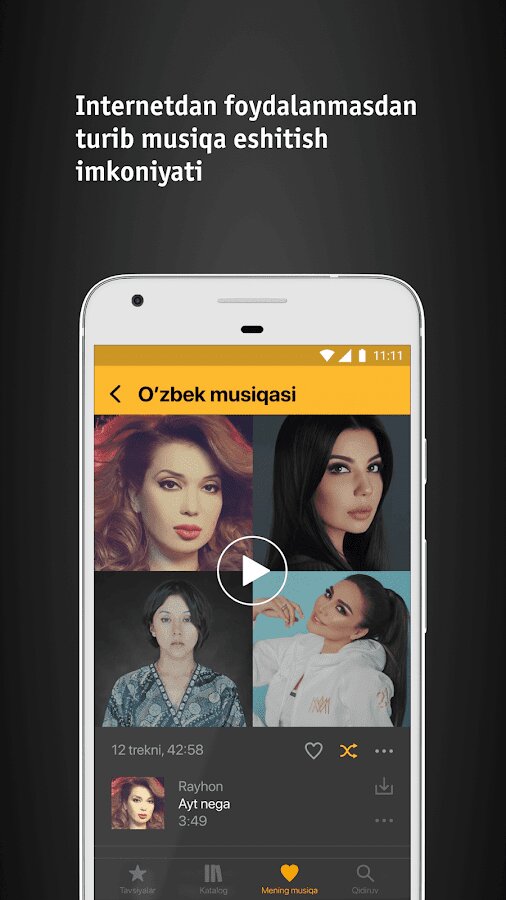 - Офлайн-режим: скачивайте песни на телефон и слушайте без интернета;