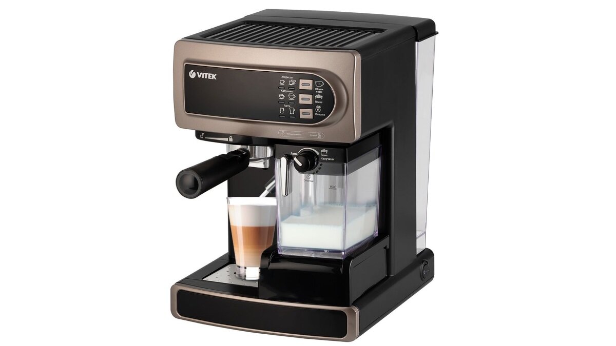 В любом правиле есть исключения, и в данной статье таким исключением выступает рожковая кофемашина VITEK VT-1517. Это значит, что здесь не используются капсулы — вместо этого нужно засыпать кофейные зёрна, которые под действием пара дают вкуснейший ароматный кофе. Правда, «вкусов» в привычном понимании в этом случае нет, так как конечный напиток зависит только от качества воды и самих зёрен. Обычно качественные кофемашины такого формата стоят от 40 до 60 тысяч рублей, но конкретно эта модель является редким представителем доступных и надёжных рожковых кофемашин. Лучший выбор для тех, кто не горит желанием брать капсульную модель.
