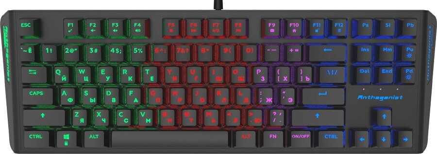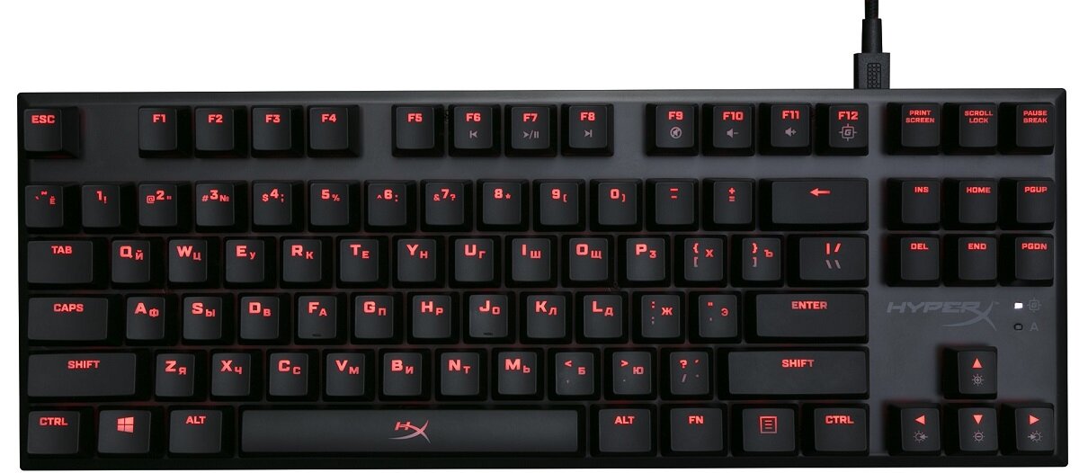 Весьма удобный во всех отношениях вариант для геймеров, которые не хотят тратить излишне много денег на приобретение клавиатуры, но при этом хотят получить качественный продукт для комфортной игры. Здесь 4-зонная подсветка, которая позволяет находить нужные кнопки в темноте (её нельзя настраивать), нет зачастую ненужного цифрового блока в правой части корпуса, зато есть прочный кабель, хороший пластик и кейкапы, которые не стираются через год-два активного использования. Для модели, которая позиционируется как весьма доступная, перечень преимуществ более чем достойный.