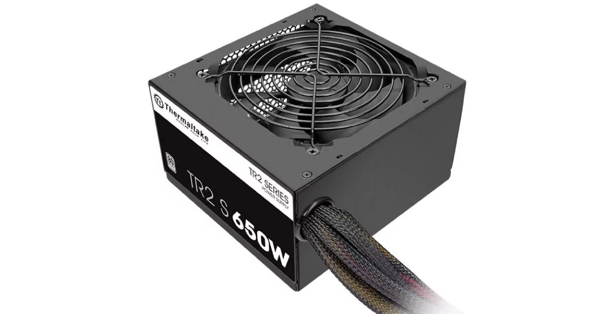 В этот компьютер идеально подойдёт блок питания Thermaltake TR2 S мощностью 650 Вт — он может похвастаться сертификатом 80 PLUS Standard (самый базовый сертификат из возможных), стандартом ATX12V 2.3 и системой активного охлаждения с вентилятором на 120 мм. Кроме того, производитель реализовал все необходимые системы защиты: от скачков, перенапряжения и короткого замыкания. Также стоит отметить, что хотя БП относится к крайне дорогим решениям, производитель даёт на модель два года гарантийного обслуживания — чаще всего доступные блоки питания получают всего год. При этом мощности в 650 Вт предостаточно, чтобы система работала без чрезмерной нагрузки и предоставляла запас под будущий апгрейд.