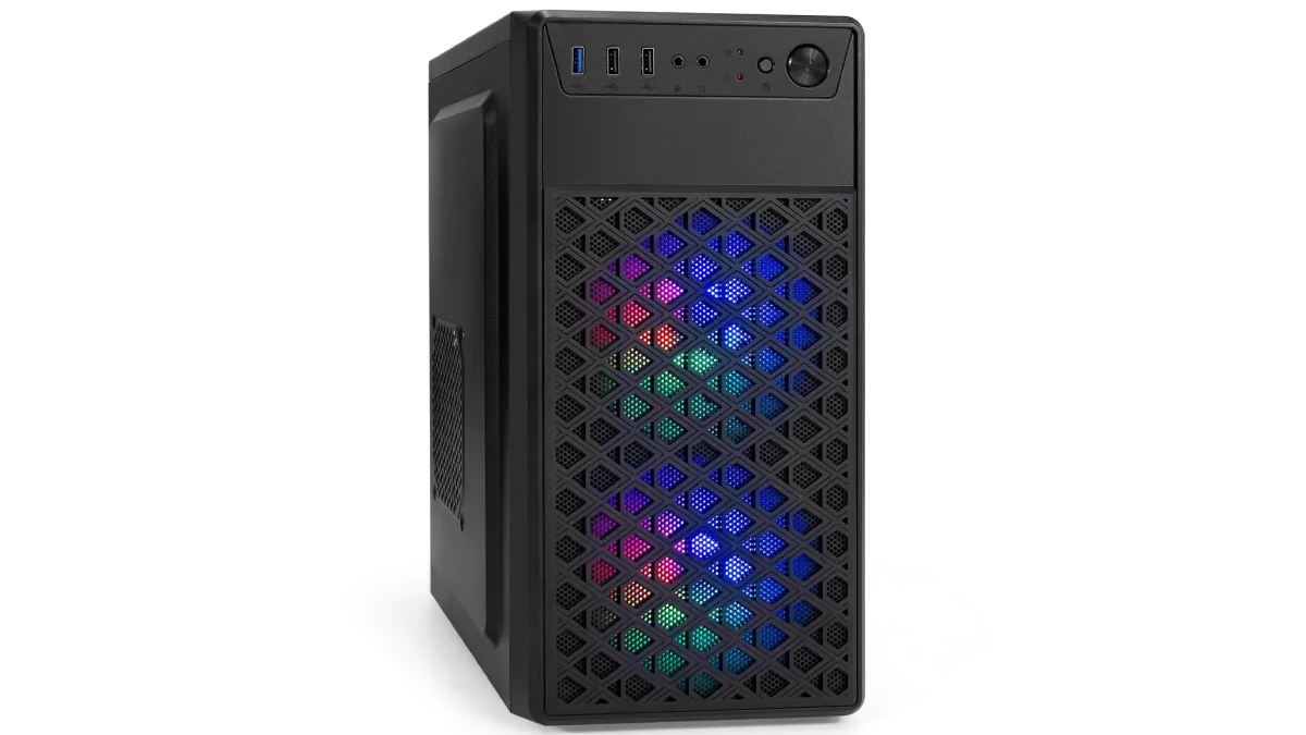 Собирать все вышеперечисленные компоненты в единую систему предлагаю в корпусе ExeGate mEVO-7803 Black, который на данный момент можно смело назвать лучшим решением в ультрабюджетном сегменте. Дело в том, что помимо относительно крепкого каркаса данная модель поставляется с предустановленными вентиляторами — на фронтальной панели, за вставкой с перфорацией, имеется две «вертушки» по 120 мм с ARGB-подсветкой. Кроме того, кейс полностью удовлетворяет требования по свободному пространству под процессорный кулер (148 мм) и видеокарту (197 мм), позволяя собрать стильную и хорошо продуваемую сборку без дополнительных вложений на вентиляторы. Конкуренты с теми же бонусами стоят на тысячу дороже.