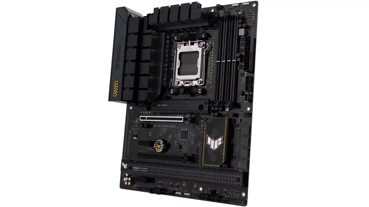Основой для топового геймерского компьютера выступит материнская плата ASUS TUF GAMING B650-PLUS — она получила все необходимые фишки и даже немного больше, но стоит вполне разумных денег, так как выступает предтоповым вариантом бренда. Здесь имеются большие радиаторы из алюминия на цепях питания, довольно толстый текстолит, качественная компонентная база, усиленный порт под видеокарту (в данном случае он лишним точно не будет), интуитивно понятное оформление BIOS и штатный радиатор для M.2-накопителя. И, что крайне важно для текущей сборки, плата поддерживает интерфейс PCI-E 5.0 для SSD, что позволит получить впечатляющую скорость чтения и записи. В данной ценовой категории — лучшее решение.