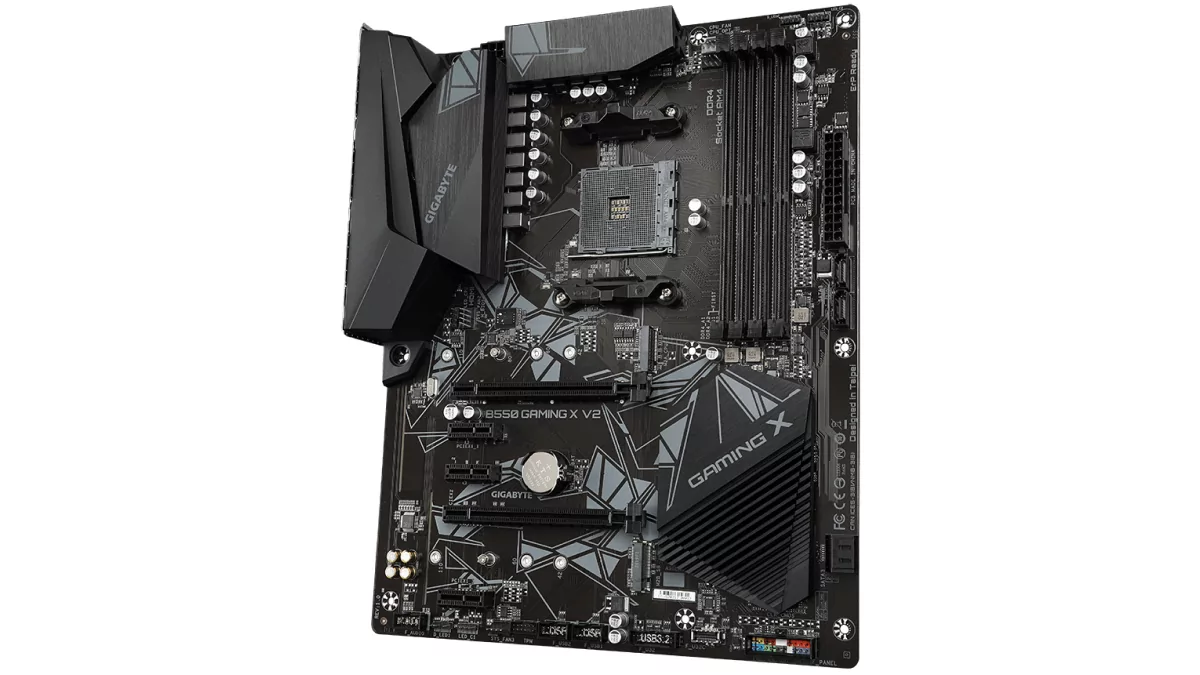 За основу доступного геймерского ПК предлагаю взять материнскую плату Gigabyte B550 GAMING X V2 — это просто шикарный вариант за свои деньги. Пусть модель и выглядит достаточно скромно (особенно текстолит коричневого цвета), но здесь имеются четыре слота под оперативную память, качественная подсистема питания, декоративный кожух на портах, отличное встроенное аудио Realtek ALC887 с 7.1-канальным звуком и гигабитная сетевая карта Realtek RTL8118AS, а также понятный даже новичку BIOS. Безусловно, так как плата не относится к флагманскому сегменту, здесь нет яркой подсветки, встроенного модуля Wi-Fi и прочих новомодных штук, но, с другой стороны, пользователь не переплачивает за то, что ему не нужно.
