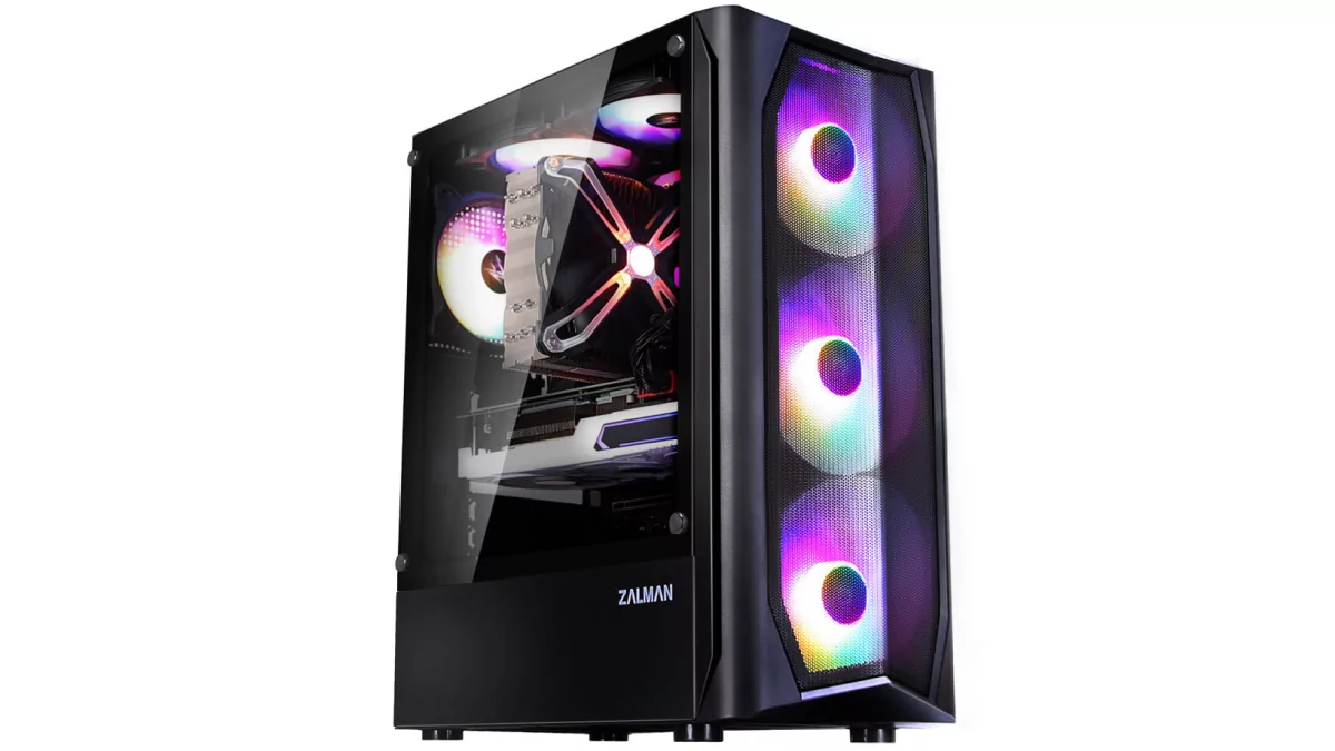 При выборе компьютерного корпуса стоит учитывать не только его визуальную привлекательность, но и возможность поставить процессорный кулер (158 мм в данном случае) и вместить видеокарту (208 мм). С этой задачей прекрасно справится Zalman N4 Rev.1, у которого при его цене практически нет конкурентов. Суть в том, что этот кейс поставляется с шестью предустановленными ARGB-вентиляторами с диаметром лопастей 120 мм. Три из них расположены на фронтальной панели, сразу за перфорированной сеткой, два — на верхней грани, а ещё один — на задней стенке. Это позволяет сразу из коробки создать в системе мощнейший поток воздуха, существенно снизив температуру без дополнительных вложений и головной боли.