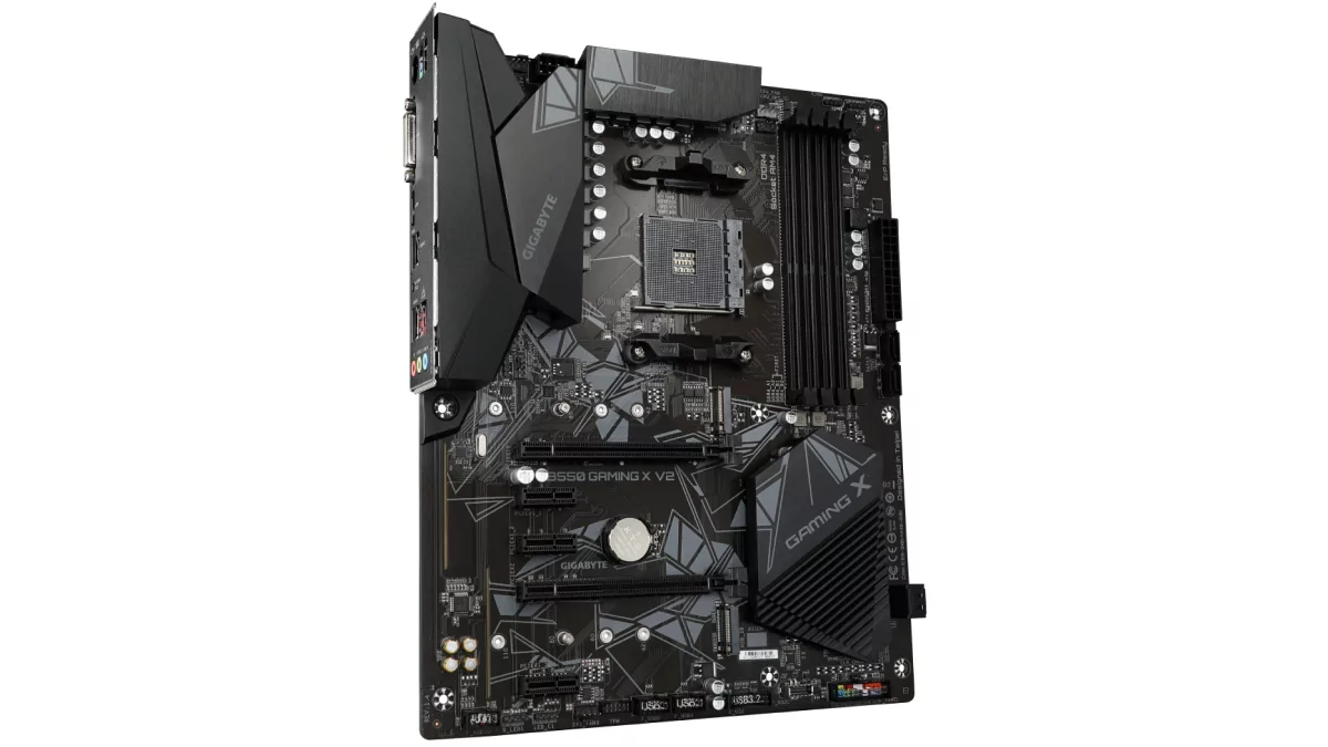 Основой для доступной игровой сборки выступит материнская плата Gigabyte B550 GAMING X V2, которая, несмотря на свой довольно скромный внешний вид, имеет впечатляющий набор преимуществ при вполне адекватной стоимости. Например, здесь имеется четыре слота под оперативную память (у недорогих плат на чипсете Intel их всего два), богатый набор портов для подключения периферийных устройств, толстый текстолит, отличная подсистема питания с радиаторами из алюминия, современный интерфейс BIOS, приличная встроенная аудиокарта и три года гарантии от производителя. В данном ценовом сегменте на территории России найти что-то более выгодное будет очень проблематично, особенно если откинуть китайские бренды.