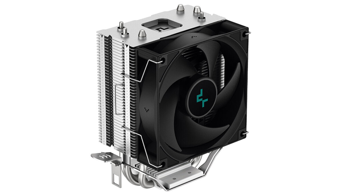 Отвечать за охлаждение процессора в ультрабюджетной сборке будет довольно доступный процессорный кулер DeepCool AG300, который пусть и выглядит скромно, но с поставленной задачей справляется. Стоит сказать, что у этой модели имеется прямой контакт медных тепловых трубок с теплораспределительной крышкой процессора, что положительно сказывается на эффективности рассеивания тепла. Также кулер получил неплохой радиатор из алюминия и фирменный PWM-вентилятор (в этом ценовом сегменте — большая редкость) с диаметром лопастей 92 мм. В результате «башня» работает тихо, хорошо справляется с лишним теплом и, что немаловажно, из-за небольшой высоты позволяет выбрать недорогой корпус.