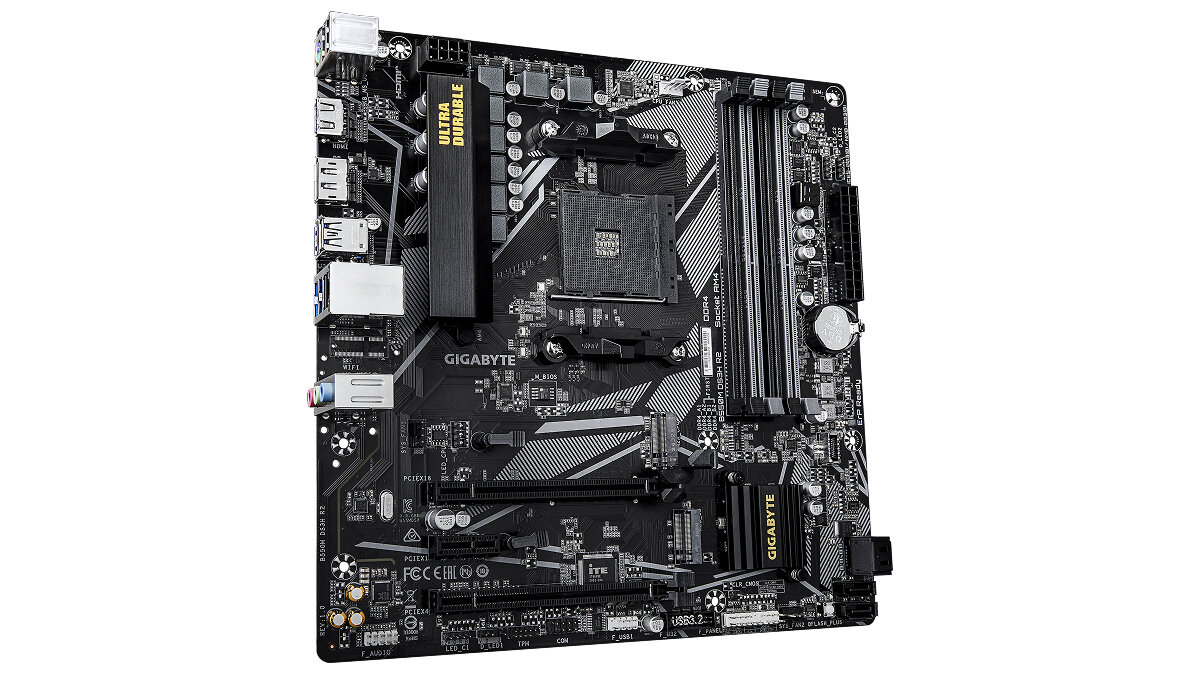 Фундаментом для доступной игровой системы выступит материнская плата Gigabyte B550M DS3H R2, которая, безусловно, выглядит крайне скромно, но предлагает всё, что нам необходимо. Здесь имеется четыре слота под оперативную память (позволит в будущем апгрейдить систему без смены платы), отличная подсистема питания с радиатором из алюминия, неплохая встроенная аудиокарта Realtek ALC1220 с 7.1-канальным звуком, относительно свежий интерфейс BIOS, с которым справится даже новичок, и, конечно, три года гарантийного обслуживания от производителя. Последний пункт особенно важен в сегменте недорогих решений, так как обычно платы получают всего год гарантии примерно за те же деньги.