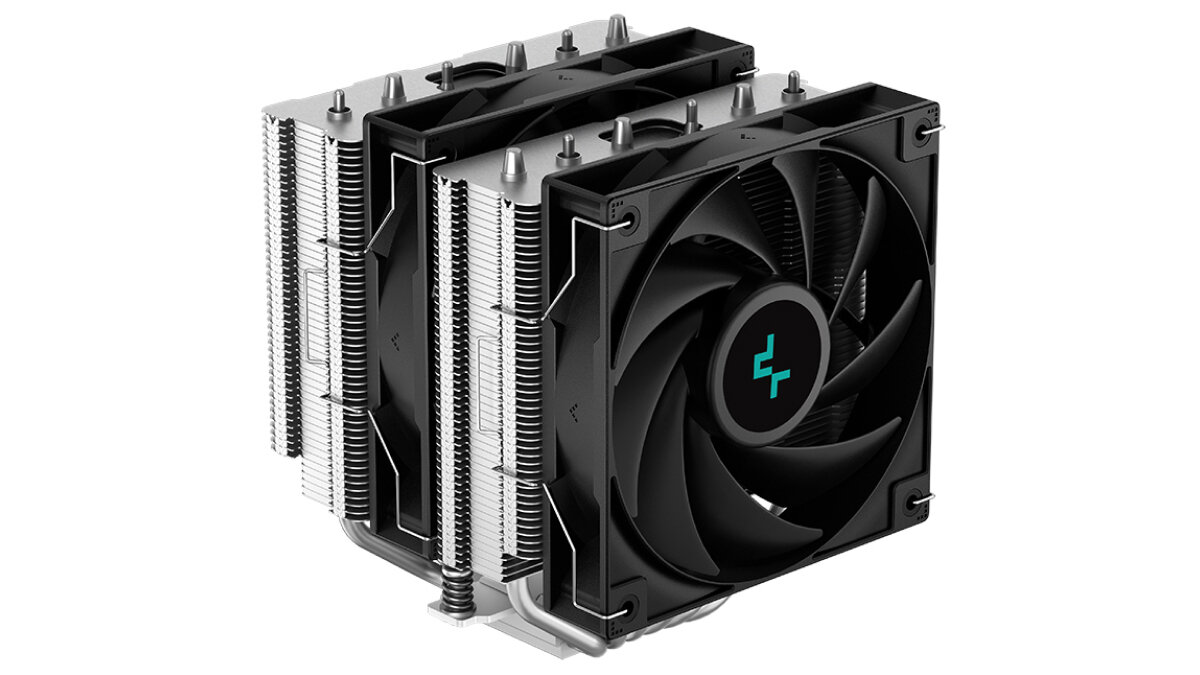 Например, с задачей охлаждения вышеупомянутого процессора прекрасно справится башенный кулер DeepCool AG620, который на данный момент заметно подешевел и не оставляет конкурентам ни единого шанса. При цене чуть дороже 3,5 тысяч рублей эта «башня» предоставляет шесть медных тепловых трубок, радиатор из алюминия, разделённый на две отдельные секции (это положительно сказывается на эффективности рассеивания тепловой энергии), а также два фирменных PWM-вентилятора по 120 мм со скоростью вращения 300-1850 об/мин. Данная конструкция способна рассеивать до 260 Вт тепла, тогда как процессор даже в тяжёлых играх потребляет в четыре-пять раз меньше энергии. За свои деньги — просто шикарная «башня».