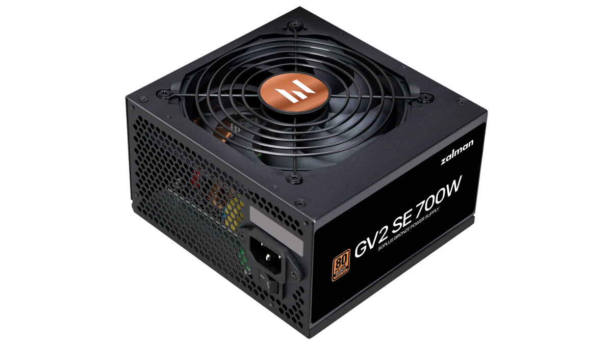 Так как процессор в этой системе можно назвать относительно энергоэффективным, а видеокарта даже в пике потребляет не так уж много энергии (до 200 Вт), тратить деньги на чрезмерно мощный блок питания нет никакой необходимости. Хватит и модели Zalman GV2SE на 700 Вт — этот БП может похвастаться сертификатом 80 PLUS Bronze, достойной системой охлаждения с вентилятором на 120 мм, приличной (для данного ценового диапазона, естественно) компонентной базой, а также длинными кабелями с плотной обмоткой. Да, здесь нет модульной системы подключения кабелей или сертификата Gold-тира, но и цена у модели довольно низкая, что при высоком качестве компонента является существенным преимуществом.