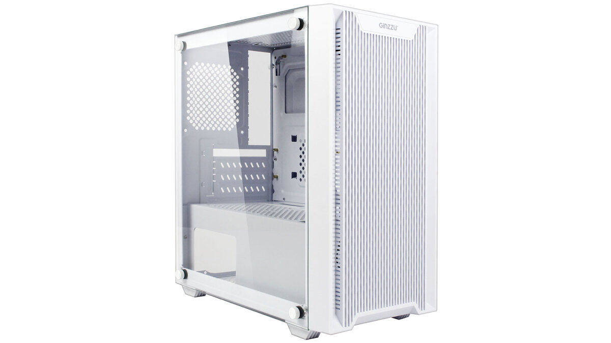 Собирать бюджетный игровой компьютер предлагаю в достаточно скромном с виду корпусе под названием Ginzzu CL560 — он позволяет разместить внутри относительно короткую видеокарту, невысокий процессорный кулер, материнскую плату в форм-факторе microATX, а также стандартный блок питания. Кроме того, внутри достаточно пространства для того, чтобы удобно проложить все кабели, а на фронтальной панели имеется три посадочных места для корпусных вентиляторов. Они смогут загонять внутрь системы холодный воздух, что так или иначе положительно скажется на температурном режиме внутри системы (но в комплект вентиляторы не входят). Безусловно, корпус выглядит скромно, но и стоит недорого, что тоже очень важный момент.