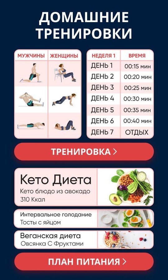 В обновленном приложении BetterMe Вас ждет огромное количество полезной информации от профессионалов, удобный и привлекательный дизайн и множество новых функций. Грамотно составленные планы тренировок на разные группы мышц и разнообразные программы питания помогут вам не только получить красивое тело, но и укрепить здоровье.