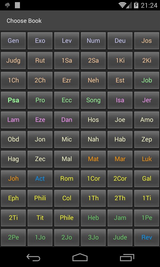 AndBible: Изучение Библии – это мощное, но простое в использовании приложение для автономного изучения Библии для Android. Приложение не нацелено на то, чтобы просто читать Библию, но ориентировано на то, чтобы быть продвинутым инструментом для углубленного, личного изучения Библии.