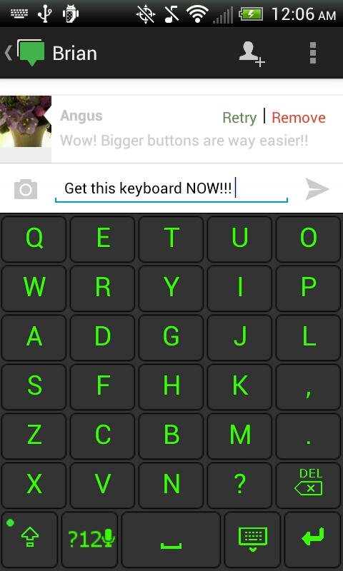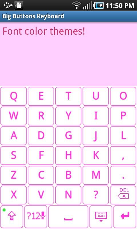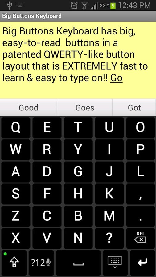 Представьте: вы одной рукой набираете текст на клавиатуре с кнопками, вдвое большими, чем кнопки стандартной клавиатуры вашего телефона. Буквы, цифры, знаки препинания — с использованием Big Buttons набор текста будет удобен и точен. (В Big Buttons в ландшафтном режиме используется стандартная раскладка QWERTY (AZERTY, QWERTZ)).