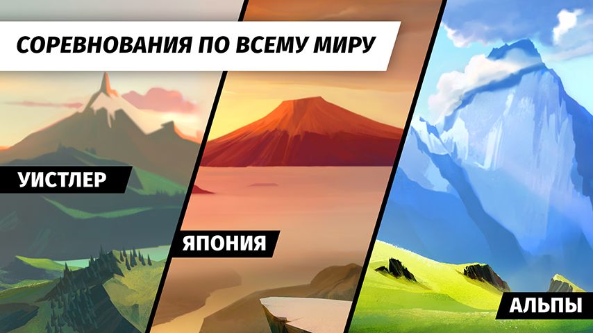 - 60 трасс и 3 потрясающих реальных места проведения соревнований — Уистлер, Альпы и Япония, и это только начало.