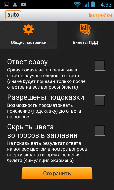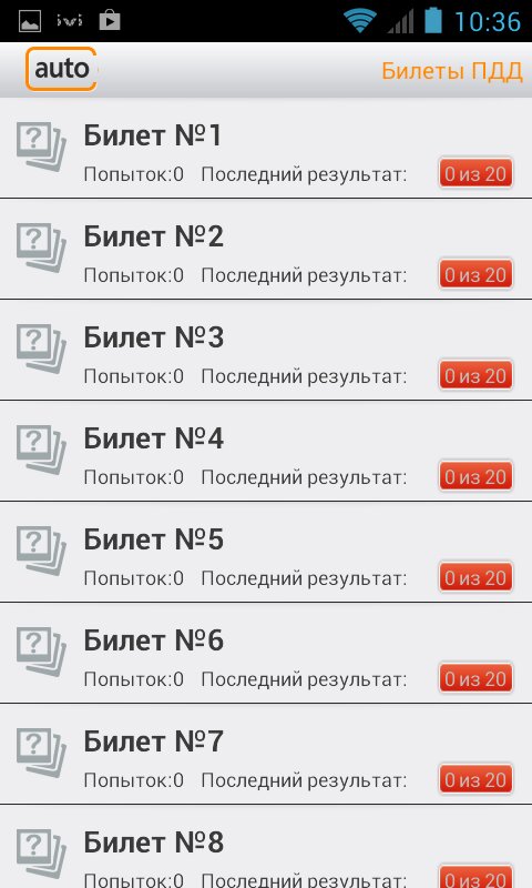 Билеты ПДД 2013 РФ - подготовка к сдаче экзамена. Приложение также успешно работает и на планшетах. В приложении доступны абсолютно все 40 билетов как по категориям AB, так и CD (небольшим бонусом набор шуточных билетов), бесплатно и без надоедливой рекламы. Лучшей наградой за приложение станут ваши высокие оценки и 5 звезд в отзывах на маркете.