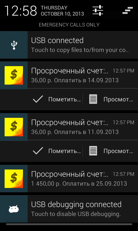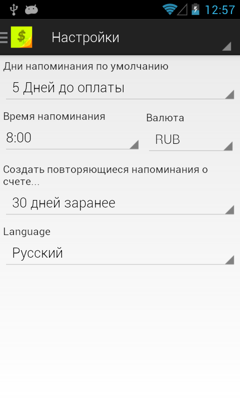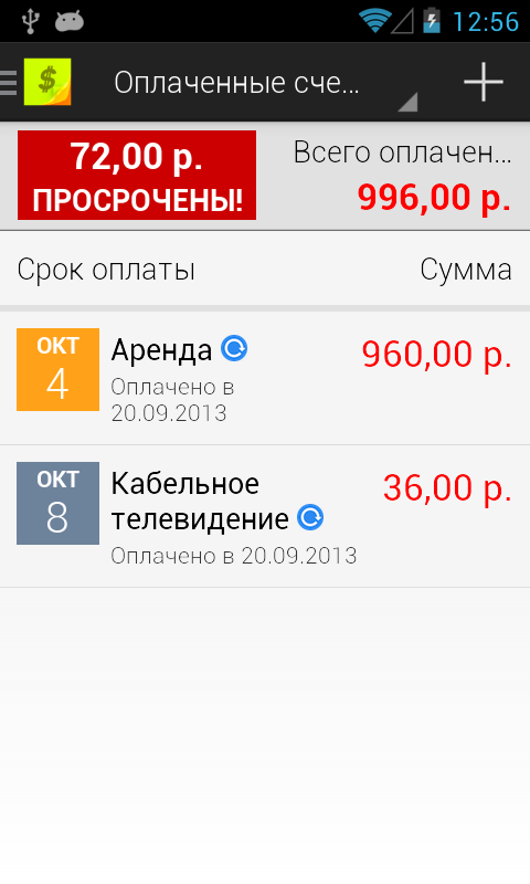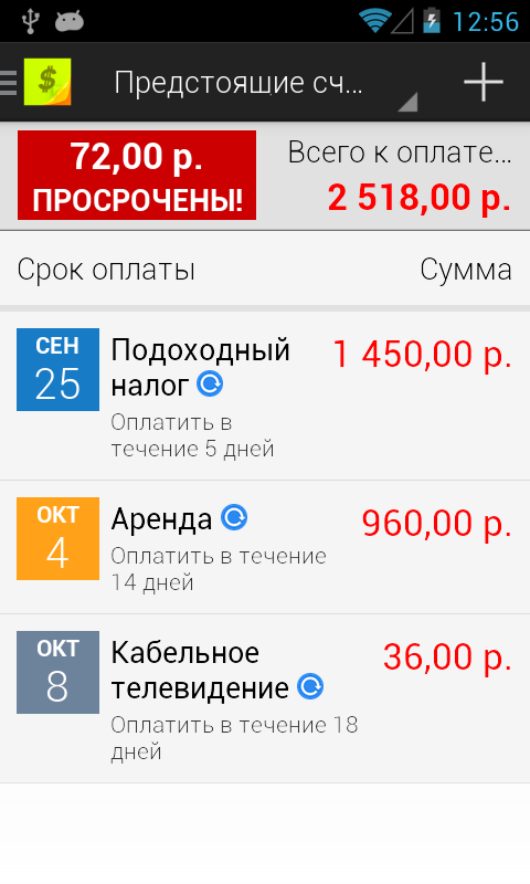 Просто введите название счёта, сумму и дату, до которой необходимо совершить оплату и ваше устройство сообщит вам о необходимости оплаты при наступлении заданной даты.
