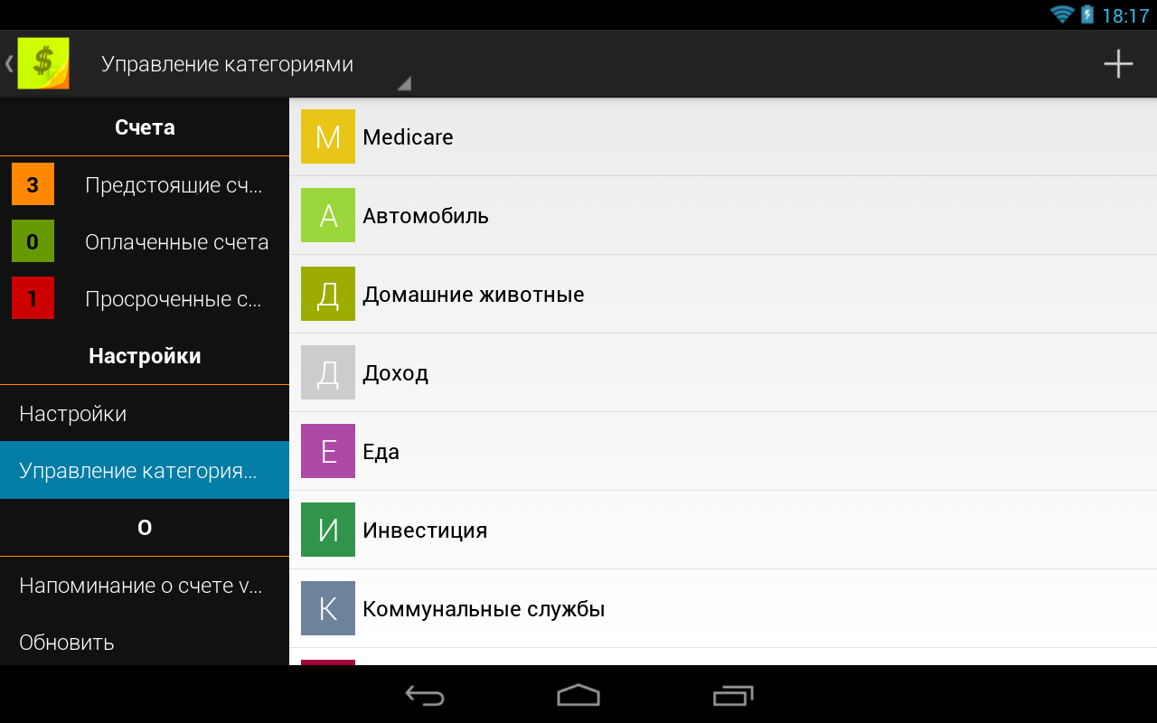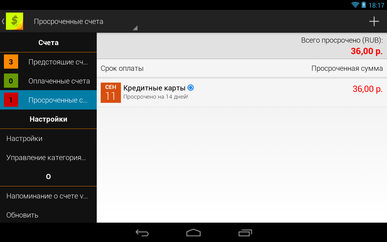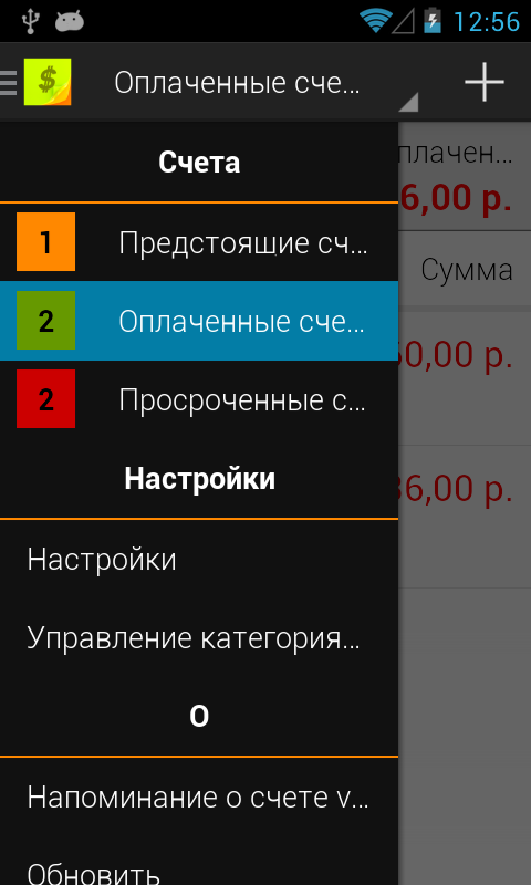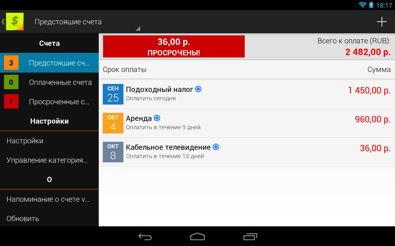 Напоминание о счете — напомнит вам о необходимости оплаты различных счетов.