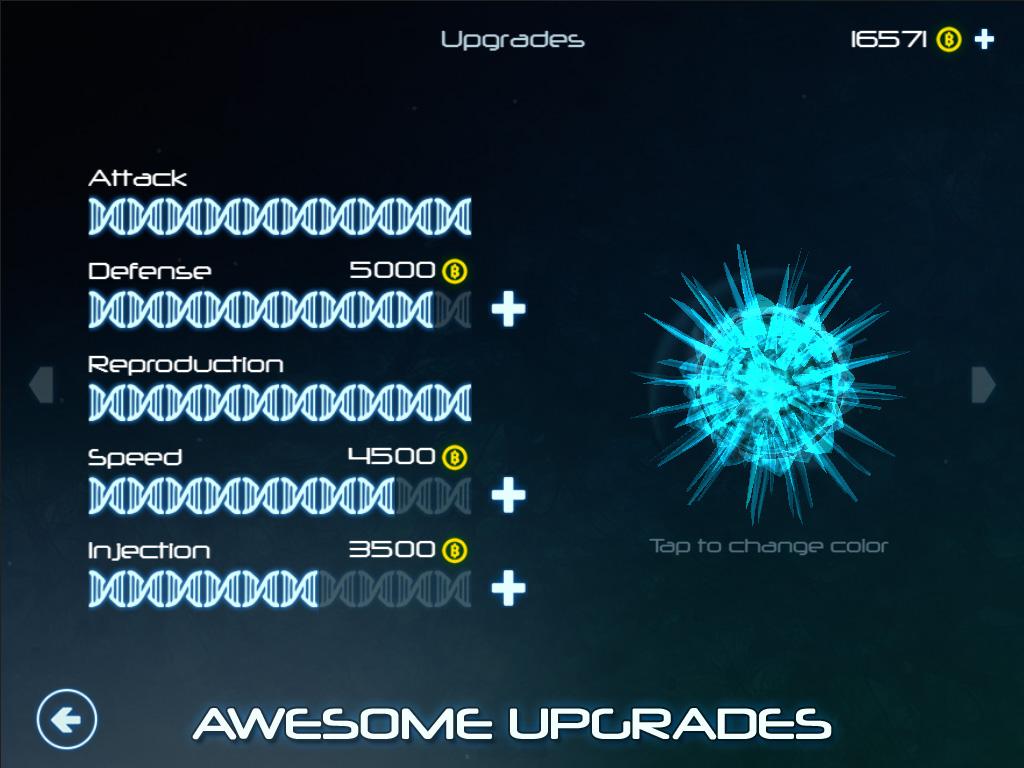 - Взаимодействуйте с четырьмя типами клеток-хозяев: Обычный, Регенерация, Защита, Скорость