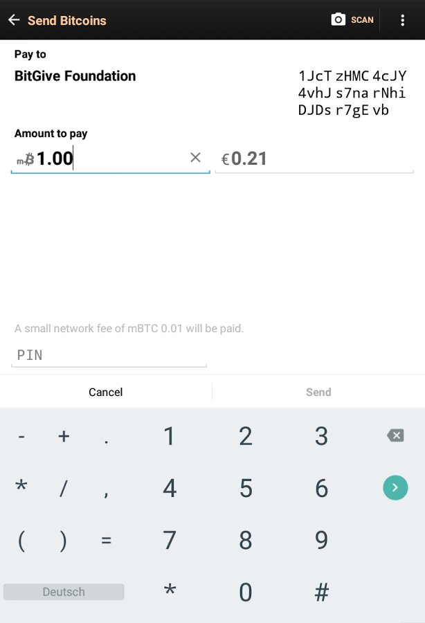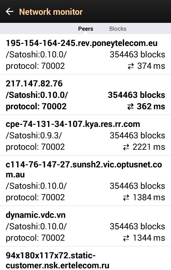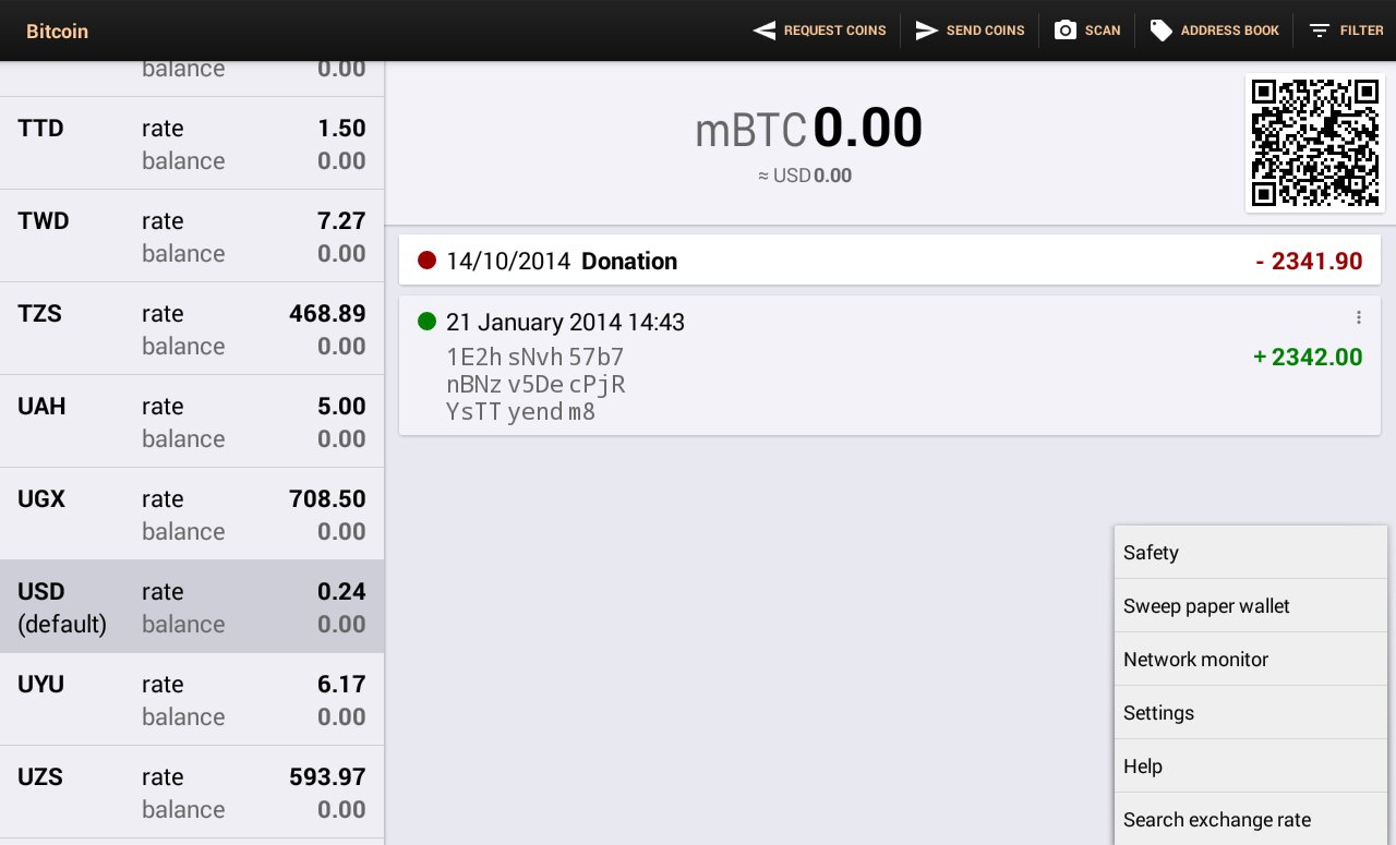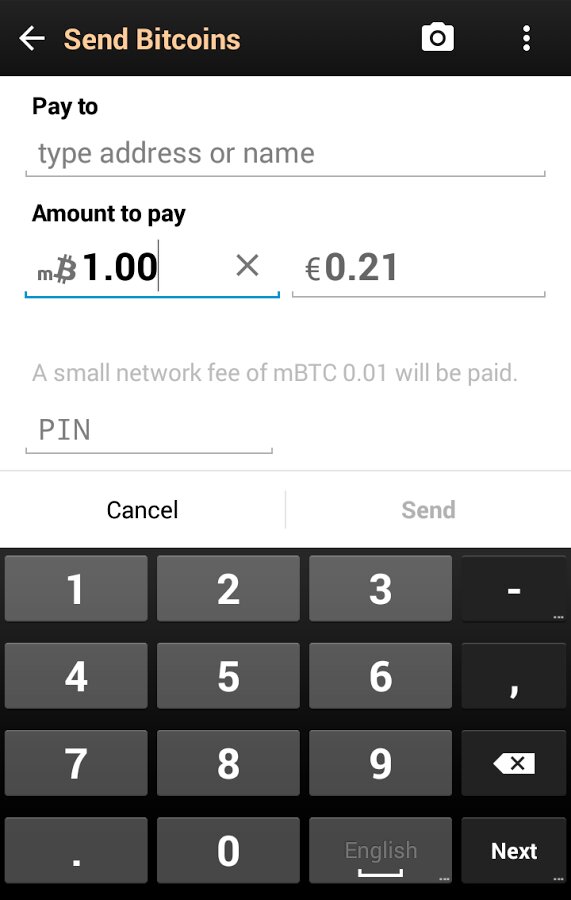 - Отправка и получение Bitcoin при помощи NFC, QR кодов или Bitcoin адресов (URLs).