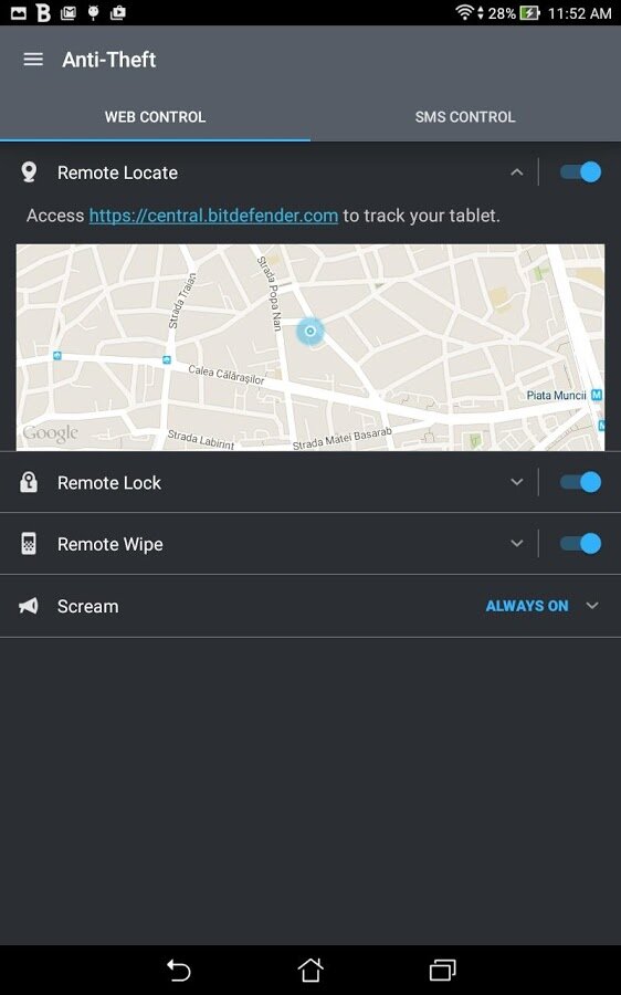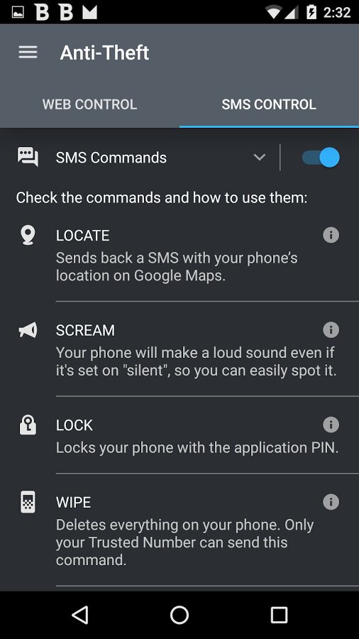 - Anti-Theft — защита личной информации в случае кражи или потери устройства Android