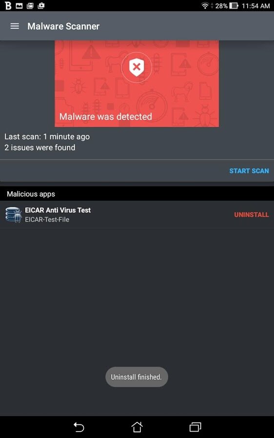 - Сканер вирусов и вредоносных программ — 100% обнаружение вирусов, вредоносных программ, шпионских программ, программ-вымогателей; проверка и удаление вредоносных программ по требованию и при установке.