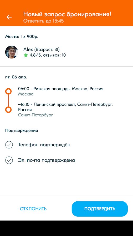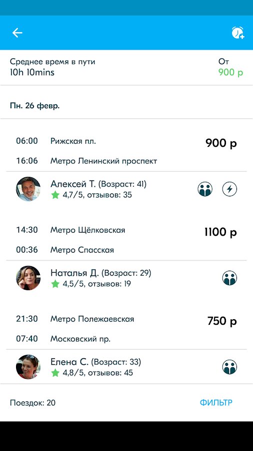 BlaBlaCar объединяет водителей, у которых есть свободные места в машине, с пассажирами, которым по пути. Найдите или предложите поездку и путешествуйте в компании надёжных попутчиков, которые разделят расходы на топливо.>НАХОДИТЕ ПОЕЗДКИ (если вы пассажир): Каждый день доступны тысячи предложений от водителей по невероятным ценам и любым направлениям. Средние цены по некоторым популярным маршрутам: Москва — Санкт-Петербург 800 руб., Москва — Нижний Новгород 450 руб., Москва — Воронеж 550 руб. Это дешевле, чем на поезде, и намного удобнее, чем на автобусе.