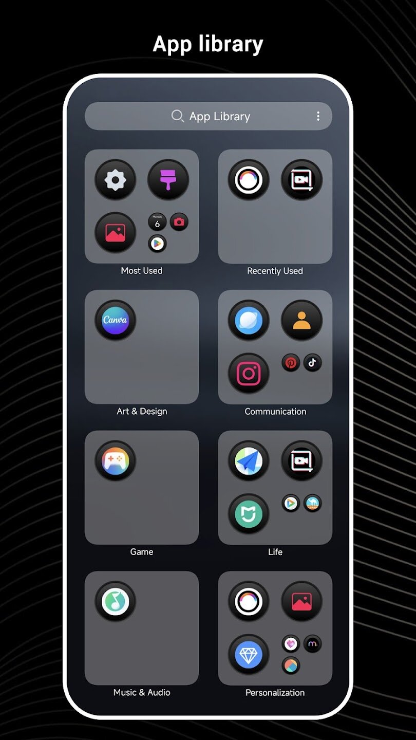 Black OS Launcher — это настраиваемый лаунчер для Android, который преобразует интерфейс вашего устройства с помощью элегантного дизайна в темных тонах.