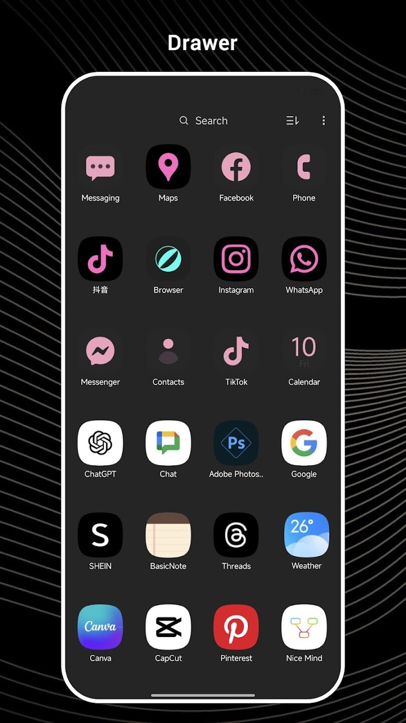 Black OS Launcher переопределяет ваш опыт использования смартфона благодаря своей утонченной темной эстетике и плавной работе. Этот лаунчер заменяет ваш стандартный домашний экран минималистичным и эффективным интерфейсом, в котором приоритетом являются скорость и организация. Вы можете настроить практически каждый элемент, от формы значков и размера сетки до анимации переходов и цветовых схем. Интеллектуальный ящик приложений автоматически классифицирует ваши приложения, сохраняя рабочий стол в порядке и отображая только часто используемые приложения для быстрого доступа.