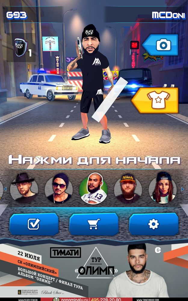 Реперы выходят на пробежку по ночному городу! Black Star Runner – это аркадная игра на ловкость и скорость реакции. В игре восемь разных бегунов, персонажей из реального рэперского мира и совершать пробежки они будут по вечерней Москве, ведь разработчики данной игры из России.