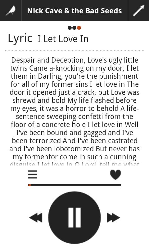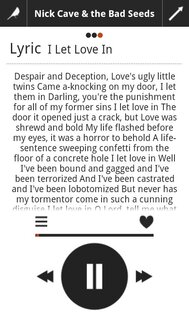 Муз. плеер. Можно слушать файлы форматов mp3, wav, ogg. В проигрывателе доступны настройки эквалайзера (требуется Android 2.3.3 и выше). Поддерживается отображение обложек альбомов, LastFm скробблинг, навигация по папкам. В настройках приложения можно поменять внешний вид . Приянтный на глаз интерфейс, в принципе мощный качественн-