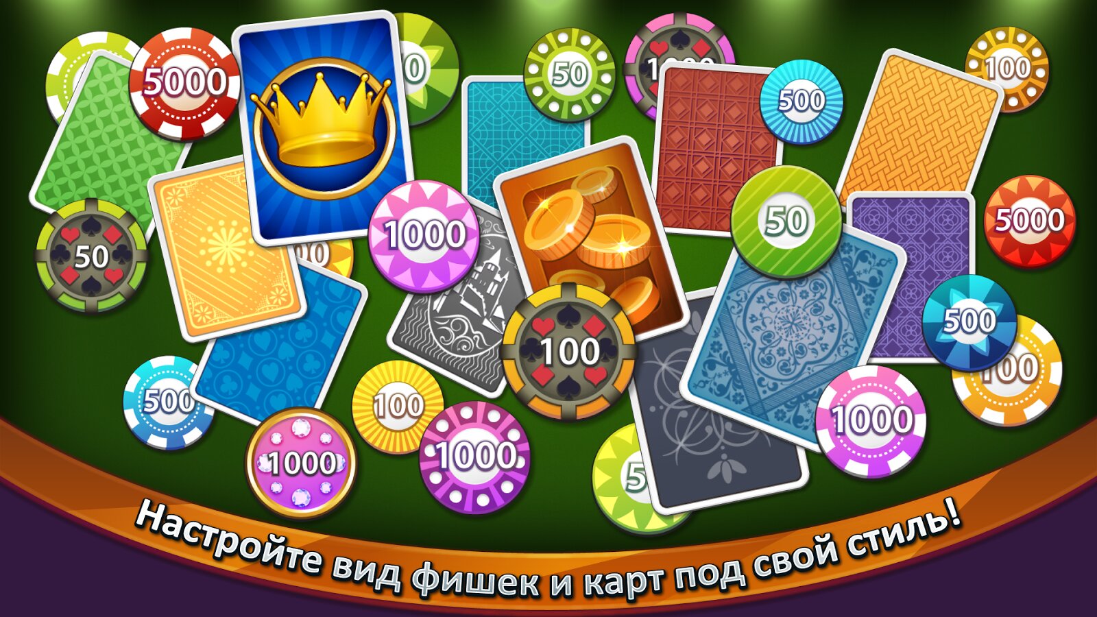 • Настраиваемые столы и фишки.