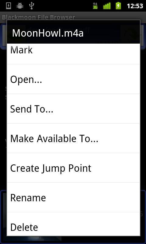 Кроме стандартных функций Blackmoon File Browser позволяет напрямую приаттачивать файлы в сообщения электронной почты, просматривать эскизы файлов изображений, создавать плейлисты из музыкальных файлов.