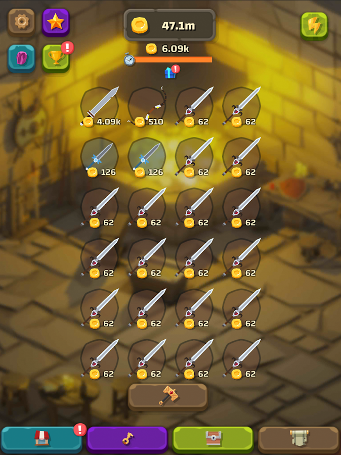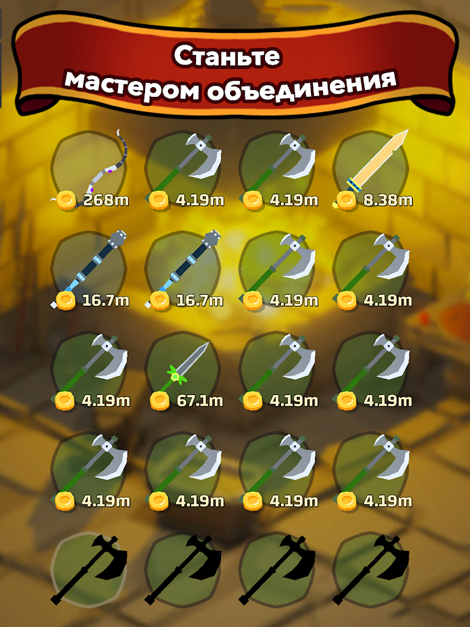 Если ты действительно любишь оружие и простой сюжет, то тогда данная игра тебе явно придется по вкусу. Собирай и коллекционируй разнообразные виды оружия, мечей, ножей, а после соединяй их вместе и получай еще более мощное оружие. Получай за это различные награды и становись самым крутым игроком.