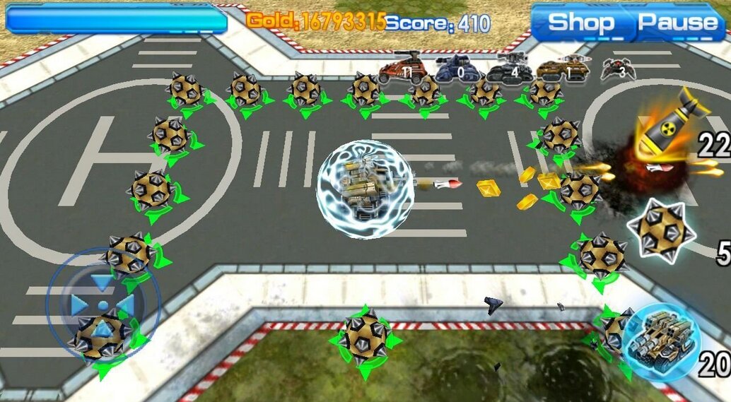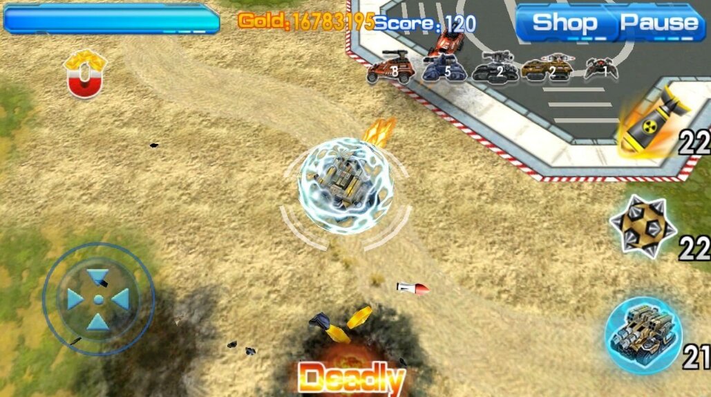 Blast Tank 3D — Поклонникам качественных танковых стратегий, где необходимо продумывать военную тактику и изучать ходы противника, разработчики предлагают шикарную игру для мобильных платформ. Благодаря виду сверху, у вас есть возможность увидеть всю обстановку на поле боя и предугадать следующий шаг врага. За каждого поверженного врага вы будете получать золотые монеты. Насладиться яркими сражениями можно, если скачать игру Blast Tank 3D на Андроид. При достаточном количестве денег можно улучшать и модернизировать свои танки. Удобное управление и великолепная трехмерная графика обеспечат истинное удовольствие от игры.