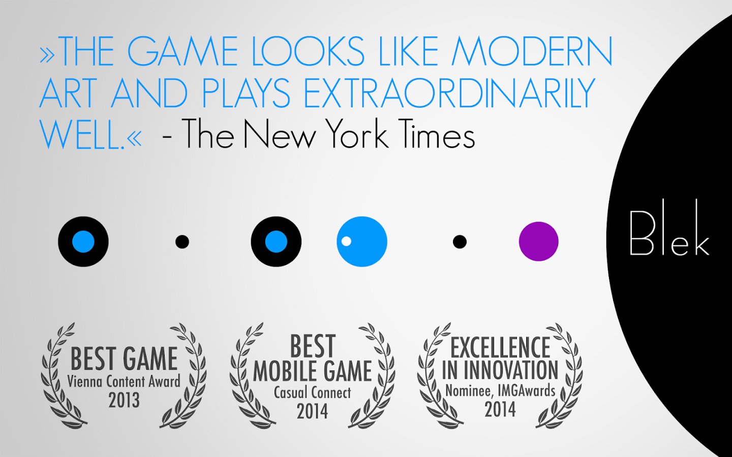 Blek — цель игры сформировать линию, которая будет собирать все цветные круги, избегая черных дыр на своем маршруте.