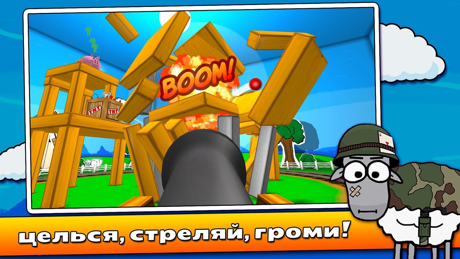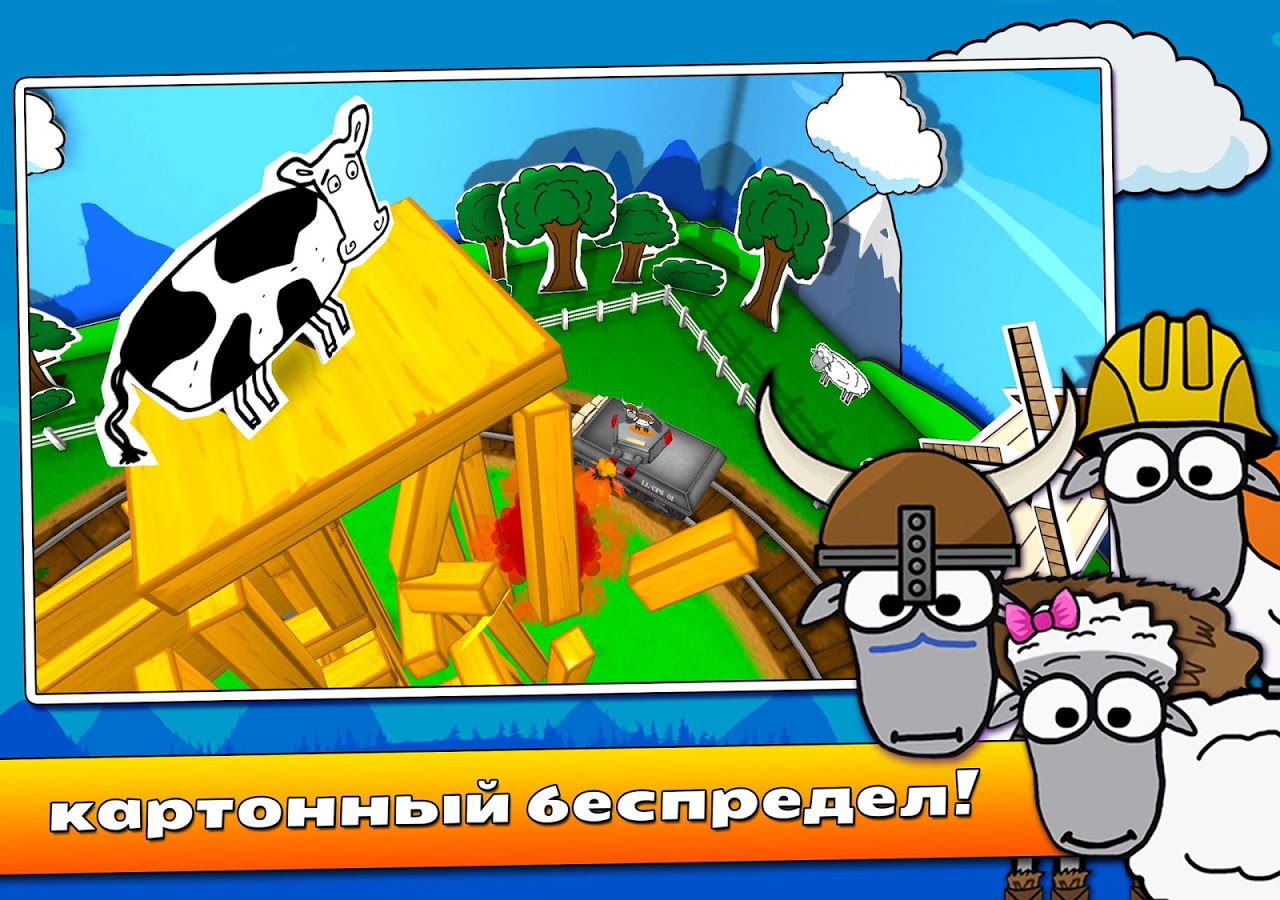 Главный герой – глупая овца, управляющая большой пушкой на колесах. Каждый уровень похож на предыдущий, так как они проходят в одной комнате, окруженной мультяшной фермой и домашними животными. Ближе к центру расположен круг рельс – по нему будет гонять непутевая овца. Посередине уровня возникают деревянные постройки, которые нужно разрушать.