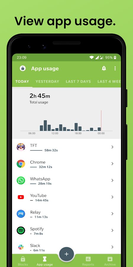 - 📈 ПОЛУЧАЙТЕ ЕЖЕНЕДЕЛЬНЫЕ ОТЧЕТЫ ОБ ИСПОЛЬЗОВАНИИ. В начале каждой недели вы будете получать обзор использования приложений за прошедшую неделю. В нем содержится подробная разбивка того, на что было потрачено ваше время в течение недели, что позволит вам легко решить, какие приложения следует ограничить. Вы сможете проводить больше качественного времени и уменьшить свою телефонную зависимость, что приведет к улучшению цифровой диеты.