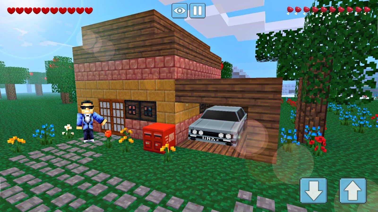- Более 100 различных блоков и предметов: Используйте разнообразные материалы для строительства зданий, создания оружия и брони, а также украшения интерьеров.