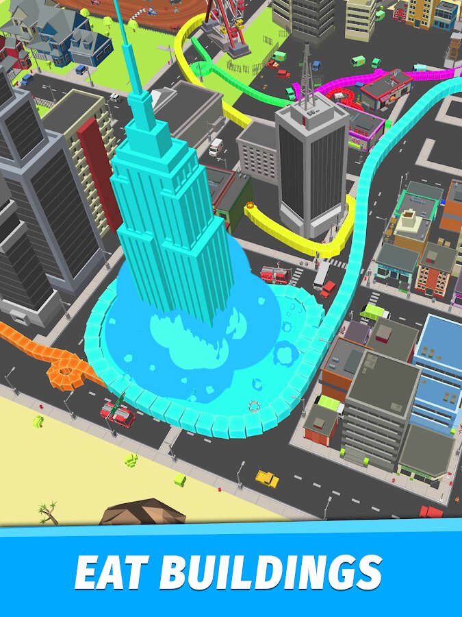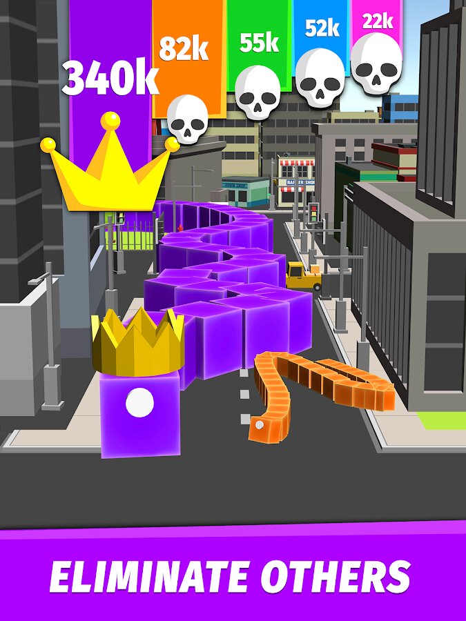 Превратите свою хладнокровную рептилию в огромного монстра, который пожирает все на своем пути: машины, деревья, здания и даже небоскребы! Кроме того, пока вы кормите свою змейку «городской» едой, среди этих каменных джунглей будут стремительно расти змейки ваших соперников. Будьте осторожны, ведь другие игроки могут оказаться сильнее и уничтожить вашу змейку, в таком случае придется все начинать сначала. Почувствуйте себя королем этого города и съешьте все, что попадется вам на пути!