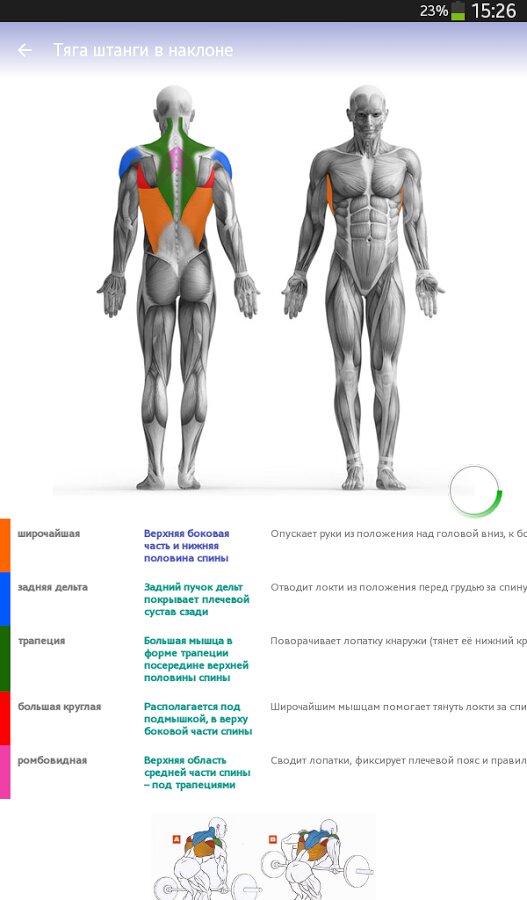 Приложение собрало в себе рекомендации не только для начинающих и совершенствующихся бодибилдеров, но и для спортсменов разных видов спорта. Техника силовых упражнений приводится с описанием задействованных мышц, схемами упражнений и практическими советами.