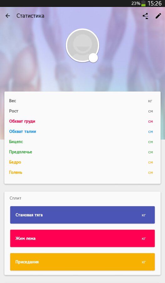 Вы можете сохранять свои результаты в приложении и просматривать их в текстовом файле на устройстве. В статистике приведены ваши результаты и сохраняются замеры основных параметров вашего тела.