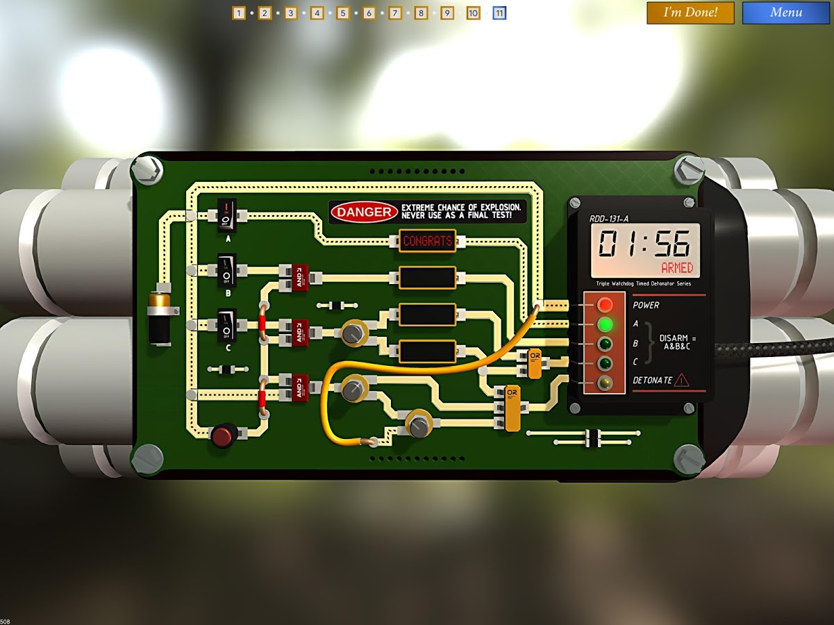 Bomb Squad Academy — вы будете обезвреживать бомбы за определенный промежуток времени. В этой игре вы будете выступать в роли сапера который должен положиться на свои знания и логику для того чтобы спасти мир. Проанализируйте работу платы бомбы и правильно отключите детонатор. Будьте предельно осторожны и внимательны, ведь каждое ваше неверное движение может привести к тому, что бомба взорвется. По мере прохождения игры сложность схем будет увеличиваться.
