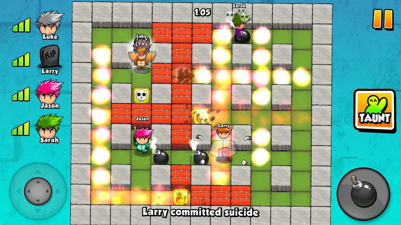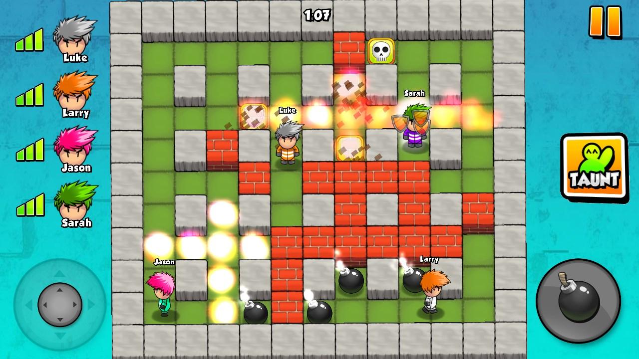 Bomber Friends — веселый экшн, в котором вы вдоволь можете взрывать бомбы. Есть возможность играть онлайн или с друзьями. Также вы можете сделать вашего персонажа уникальным, благодаря крутым шляпам!
