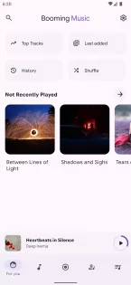 Booming Music — это современный офлайн-плеер для Android, созданный с использованием дизайна Material 3 и работающий на базе Media3. Это легкое приложение без рекламы ориентировано на обеспечение плавного и настраиваемого прослушивания вашей локальной музыкальной коллекции. Оно сочетает в себе мощные функции воспроизведения с визуально привлекательным интерфейсом, который адаптируется к цветовой схеме вашего устройства, предлагая как темный, так и черный режимы.
