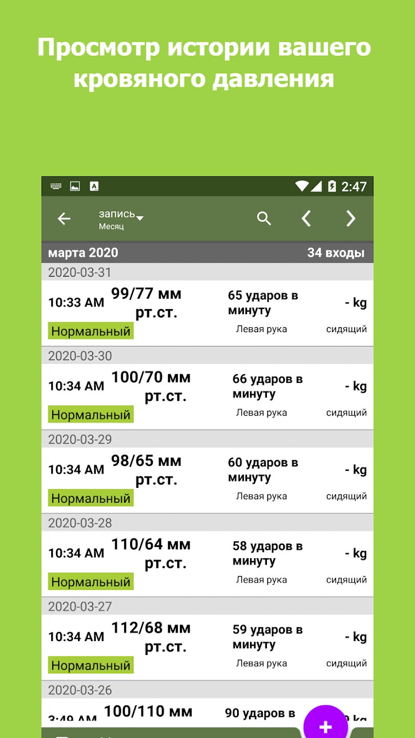 Трекер артериального давления поможет вам записывать свое артериальное давление, отслеживать тенденции артериального давления и делиться информацией с врачами.