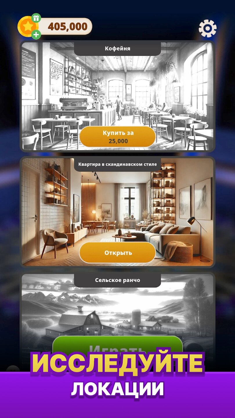 - Коллекции, которые можно разблокировать, и локации, которые можно исследовать.