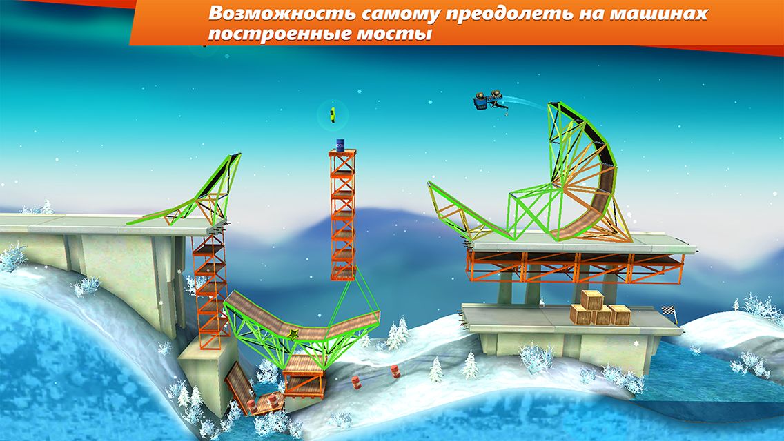 Bridge Constructor Stunts — возводите головокружительные рампы и петли, чтобы преодолеть множество разнообразных уровней. На этот раз строительство — только лишь первый шаг: теперь вам предстоит сесть за руль автомобиля и постараться достичь финишной черты. Собирайте звезды, выполняйте каскадерские трюки и сальто и громите строительные площадки, чтобы поставить новый рекорд. Но все это только после того, как вы возведете надежный мост.