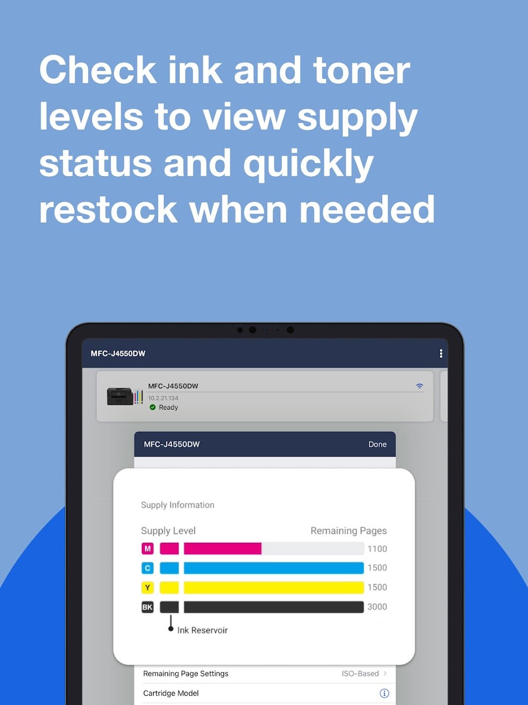 Приложение оснащено мастером настройки, который позволяет активировать и подключить принтер всего за несколько минут. После подключения вы можете легко контролировать уровень чернил и тонера для пяти устройств, покупать расходные материалы прямо в приложении и управлять подпиской EcoPro* для автоматической доставки. Помимо печати, утилита позволяет сканировать документы и отправлять их на другие устройства, а также вести удобный журнал использования для справки.